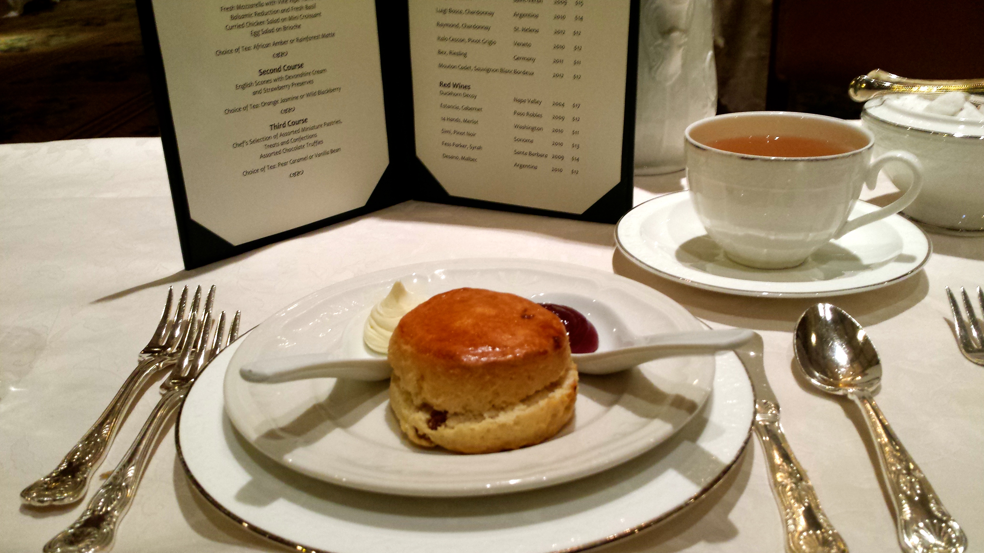 The second course was a delicious, buttery, melt-in-your mouth scone with homemade strawberry jam and devonshire cream.