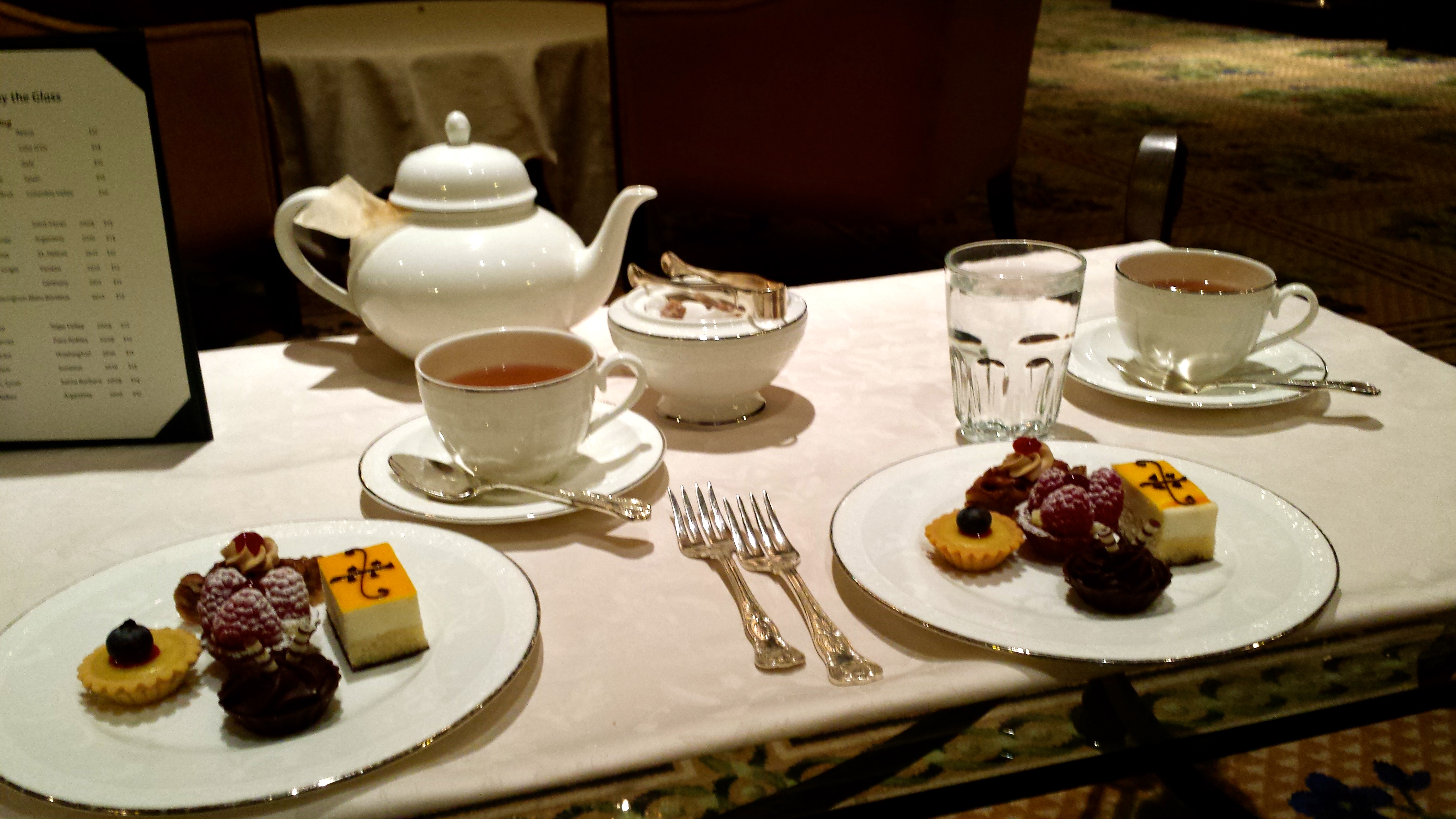And finally, desserts. The caramel pear tea and vanilla bean tea were both so flavorful and aromatic. The best of the posh little desserts had to be the dark chocolate cup pastry, followed by the lemon-raspberry tart. Enjoyed with the tea, it was sugar, spice and everything nice.