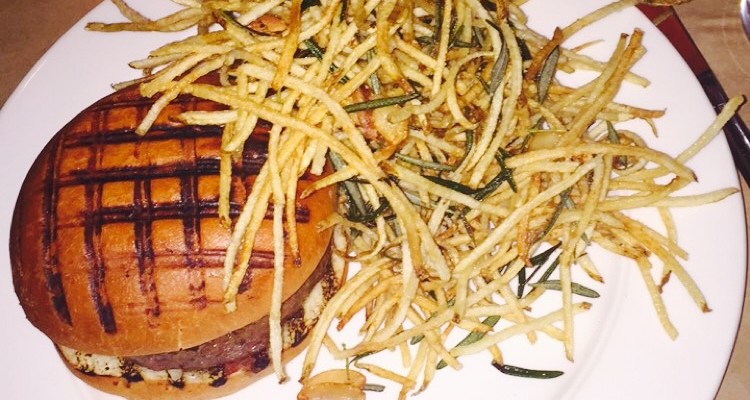 The meat was a bright pink medium rare. Not lean beef. The kind that melts in your mouth and tastes better than bacon. A dot of pungent roquefort cheese in the middle.