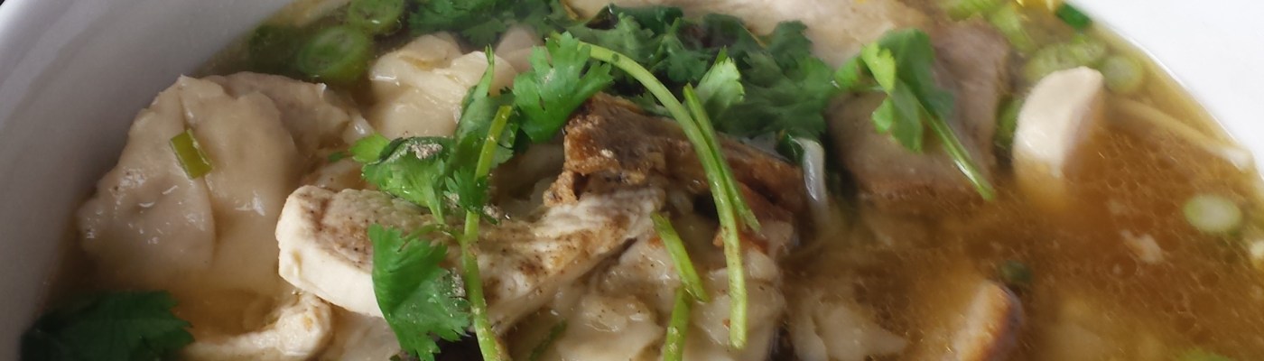 The dumpling soup had meaty chunks of chicken and pork, lots of dumplings, and shiitakes and bulbs of baby bok choy swimming in rich bone broth. Spicy enough to clear your sinuses right up.